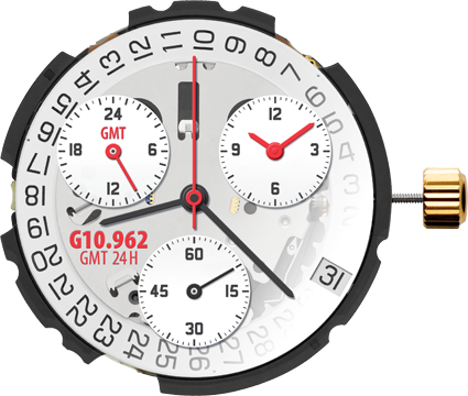 Zähler zweite Zeitzone mit 24–Stundenanzeige GMT, 12 Stunden, 60 Sekunden