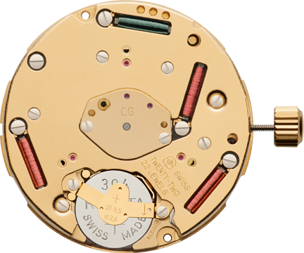 Das Kaliber ETA 251.274 CG ist ein multifunktionales Chronographen-Uhrwerk der Grösse 13¼´´´ mit Anzeige von Stunden, Minuten, Sekunden und Datum sowie mit der Technologie PowerDrive.