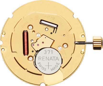 Das Kaliber ETA F07.115 ist ein Uhrwerk der Grösse 13¼´´´ mit Anzeige von Stunden, Minuten, mit oder ohne Sekunde im Zentrum und Datum, mit Technologie HeavyDrive.
