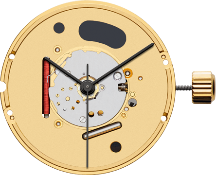 The ETA F06.402 calibre is an 11½’’’ movement displaying hours, minutes and seconds in the centre, with PreciDrive and HeavyDrive technologies.