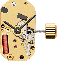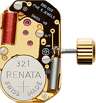 The ETA 280.002 calibre is a quartz movement measuring 3¾’’’ x 6¾’’’ displaying hours and minutes.