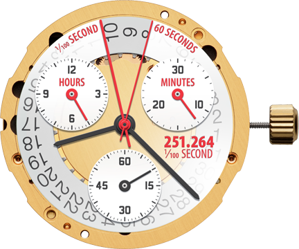 Zähler 12 Stunden, 30 Minuten, 60 Sekunden, 1/100 Sekunden